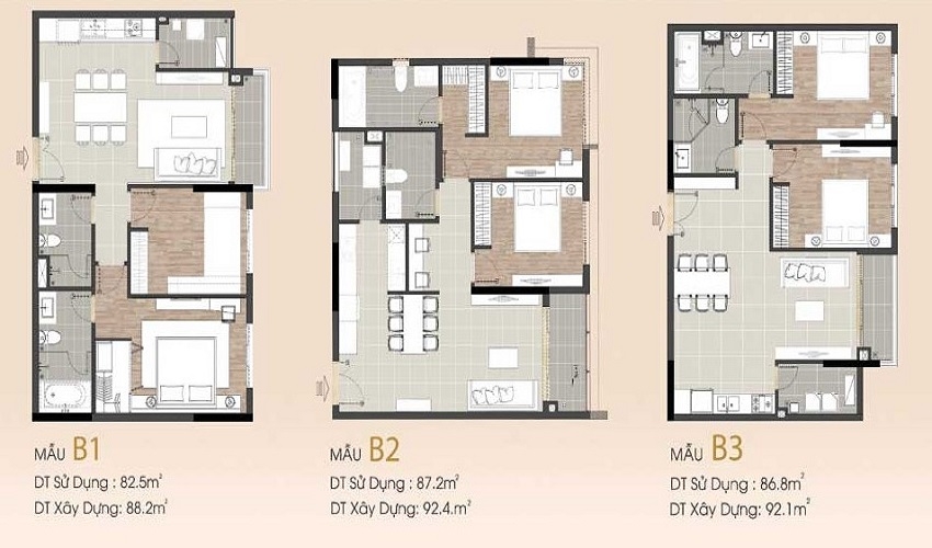 Diện tích: 88m²–160m²